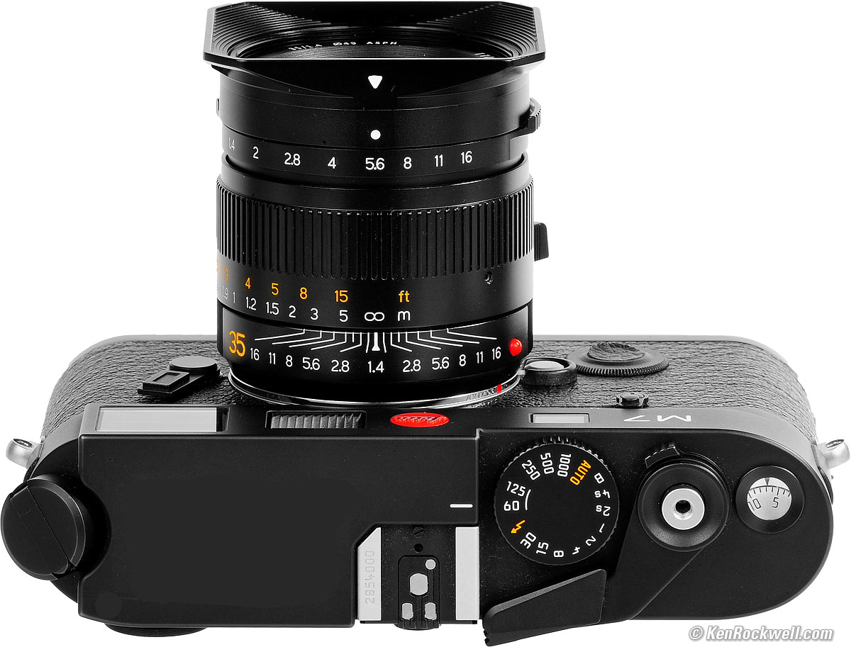 Recommendations topPerformance Compared Recommendations I'd get my 35/1.4 ASPH at Adorama in black, at Adorama in silver, at Amazon in black, at Amazon in silver, at B&H in black, at B&H in sliver or used at eBay if you know How to Win at eBay. You may also be able to find it in gold at eBay. This is a great little hunk of a lens. It's good enough optically and built like a Swiss tank — just like LEICA. While it's trivially easy to adapt this to any mirrorless camera, even with autofocus on Nikon Z, adapted manual-focus lenses like this never work as well as native ones on any of these brands. While the resulting all-metal combination feels rock-solid, sadly this lens doesn't perform as well on mirrorless as any native mirrorless lens, or as well as a DSLR lens on an adapter. Nikon's AF-S 35mm f/1.4G on an FTZ adapter is sharper than this lens as shot on a Z camera, and autofocuses and handles so much better. Adapted lenses are kludgy at best, and the autofocus LEICA to Z adapter is more of a science experiment than anything for practical shooting. For Nikon Z, get the AF-S 35mm f/1.4G or AF-S 35/1.8G on an FTZ adapter, or the Z 35/1.8. On Canon EOS R, get the superb RF 35/2 IS Macro or any EF 35mm lens on an EF to RF adapter. On Sony, stick with any of the Sony or ZEISS 35mm lenses. While its very similar photographically and ergonomically to the LEICA SUMMMILUX-M 35mm f/1.4 ASPH FLE and costs about the same as just the sales tax on the SUMMMILUX FLE, no one buys LEICA to take pictures. LEICA is a lifestyle, not a brand. Our iPhones, Canons and Nikons take much better pictures than any LEICA does. LEICAs are baubles for men who like nice things, not for people who want to take great pictures. Men buy the LEICA to establish dominance. Owning LEICA is tangible proof of a man's superior vision, inimitable taste and superior level of accomplishment. LEICAs, instruments of the immortal, are a plaything for the talented. We own LEICA because it is who we are, not because we need to take pictures. LEICAs haven't been about taking pictures since they went obsolete back in the 1960s. LEICA lenses cost what they do because they are well made and use very high grades of glass (for instance, you have to pay a lot for better homogeneity grades as LEICA does), but most of the price is paying for intangibles like bloodline and heritage. Oskar Barnack's martyrdom isn't free. While this TTArtisan lens is great for taking pictures, it isn't right to use it on a LEICA camera, since this lens lacks bloodline or heritage, and certainly doesn't confer any sort of prestige. It just takes pictures. If you have to worry about price, you should not be playing with LEICA. Sit down and let the big boys play if you can't afford genuine LEICA lenses for your LEICA camera. I use a clear (UV) protective filter instead of a cap so I'm always ready to shoot instantly. I only use a cap when I throw this in a bag with other gear without padding — which is never. The UV filter never gets in the way, and never gets lost, either. The very best protective filter is the Multicoated Hoya HD3 49mm which uses hardened glass and repels dirt and fingerprints. LEICA faithful use the LEICA 13 035 49mm UVa II filter. For less money, the B+W 49mm 010 is an excellent filter, as are the multicoated B+W and the basic multicoated Hoya filters, but the Hoya HD3 is the toughest and the best. Filters last a lifetime, so you may as well get the best. The Hoya HD3 stays cleaner than the others since it repels oil and dirt. All these filters are just as sharp and take the same pictures, the difference is how much abuse they'll take and stay clean and stay in one piece. I'd get my 35/1.4 ASPH at Adorama in black, at Adorama in silver, at Amazon in black, at Amazon in silver, at B&H in black, at B&H in sliver or used at eBay if you know How to Win at eBay. You may also be able to find it in gold at eBay. This all-content, junk-free website's biggest source of support is when you use those or any of these links to approved sources when you get anything, regardless of the country in which you live. Thanks for helping me help you! Ken Rockwell.