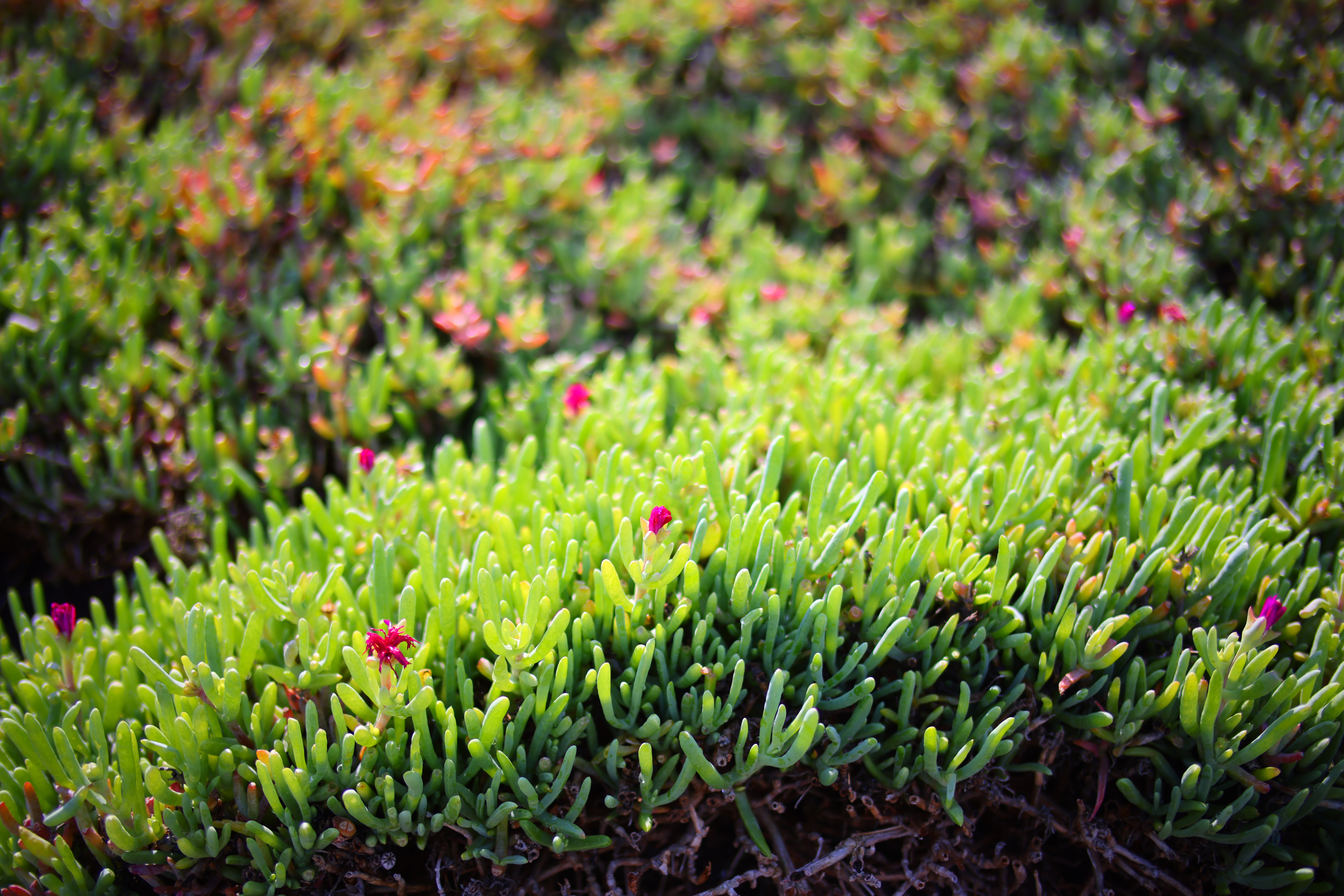 Iceplant, 10:17 AM, 16 August 2021. Canon R5, TTArtisan 35mm f/1.4 ASPH on basic mechanical adapter at f/1.4 at 1/3,200 at Auto ISO 100, Perfectly Clear. bigger or camera-original © NORMAL JPG file.