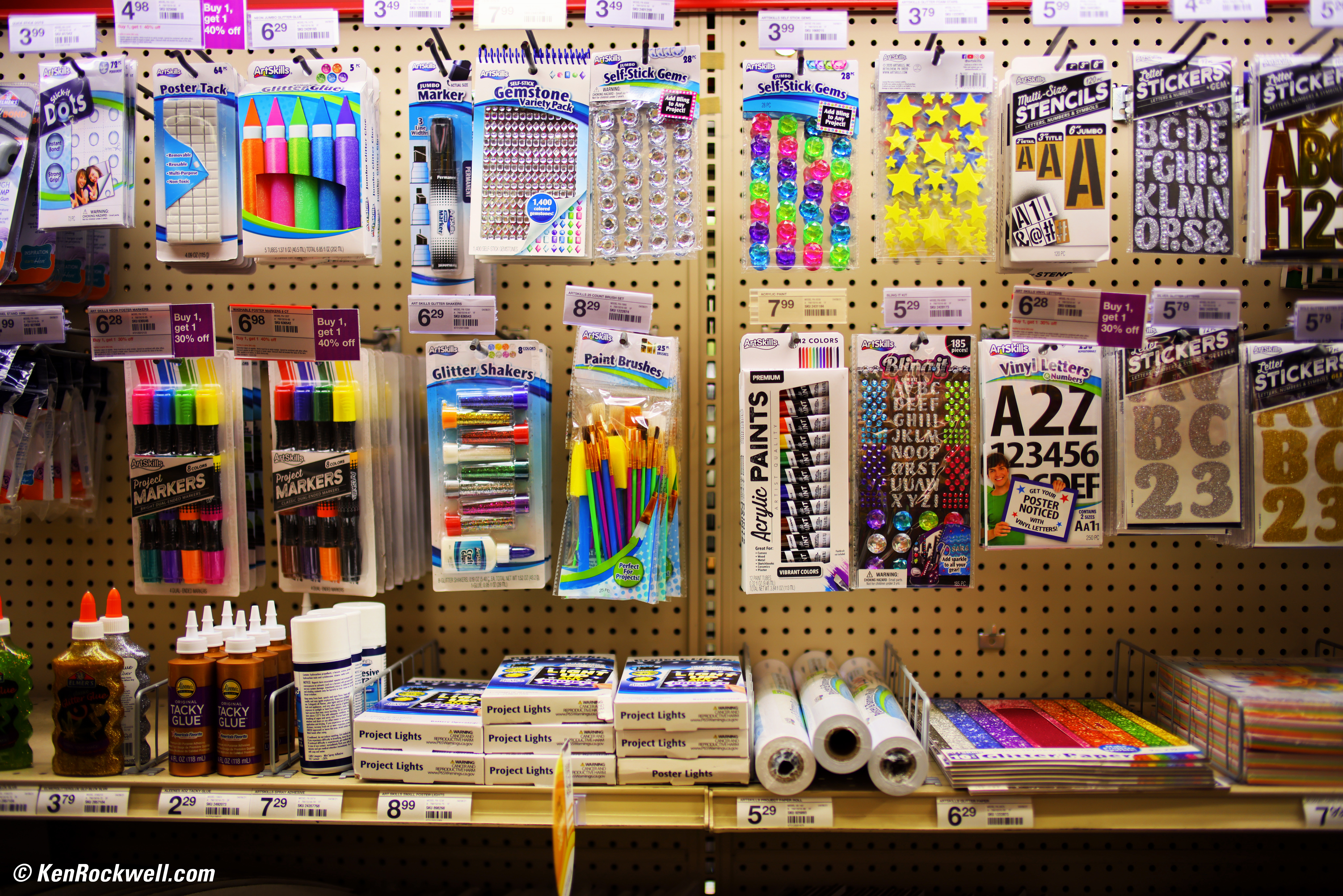 Fun Art Supplies, 8:06 AM, 19 August 2021. Canon R5, TTArtisan 35mm f/1.4 ASPH on basic mechanical adapter at f/1.4 at 1/100 at Auto ISO 100, Perfectly Clear. bigger, full resolution or camera-original © NORMAL JPG file. Very little of this is in focus, don't confuse lack of depth-of-field at f/1.4 with lens softness.