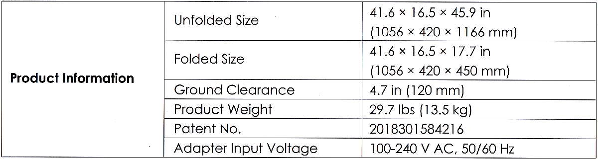 Front-Wheel Motor350 watts (1/2 HP) 36 V.