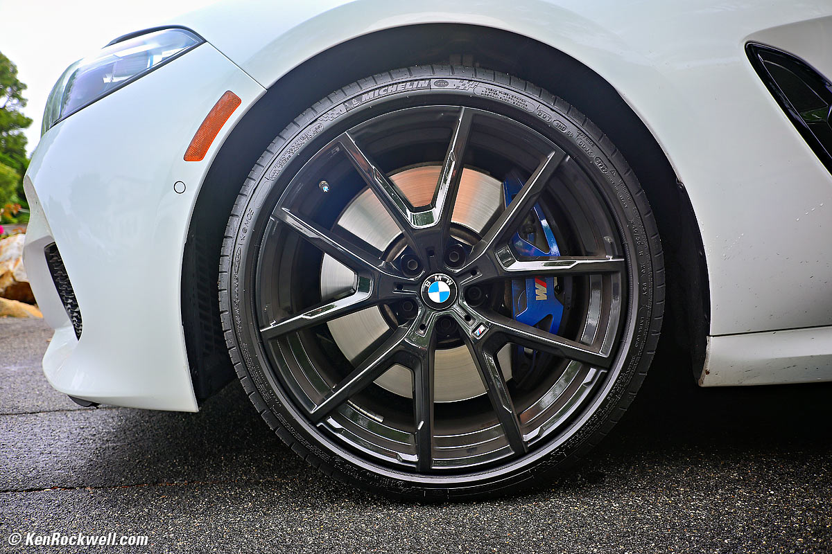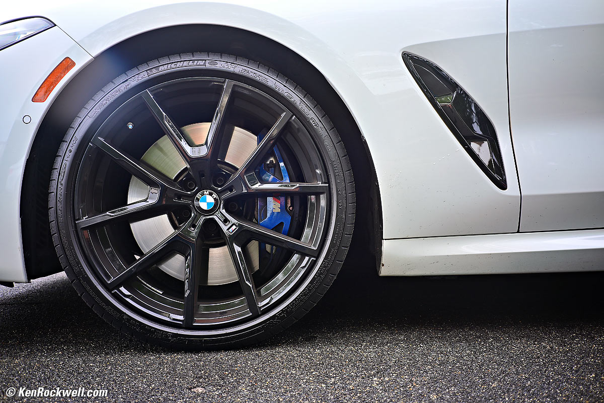 While it's silly to try to photograph watch faces with this, it is sharp and works great for regular close shots: BMW M850i xDrive Convertible Right Rear Wheel (the sun's now at my back), 9:37 AM, Saturday, 07 July 2025. Nikon Z5 II, Viltrox AF 28mm f/4.5 at its fixed f/4.5 at 1/60 at Auto ISO 100 (LV 10⅓), Radiant Photo software to add detail in the dark. bigger.