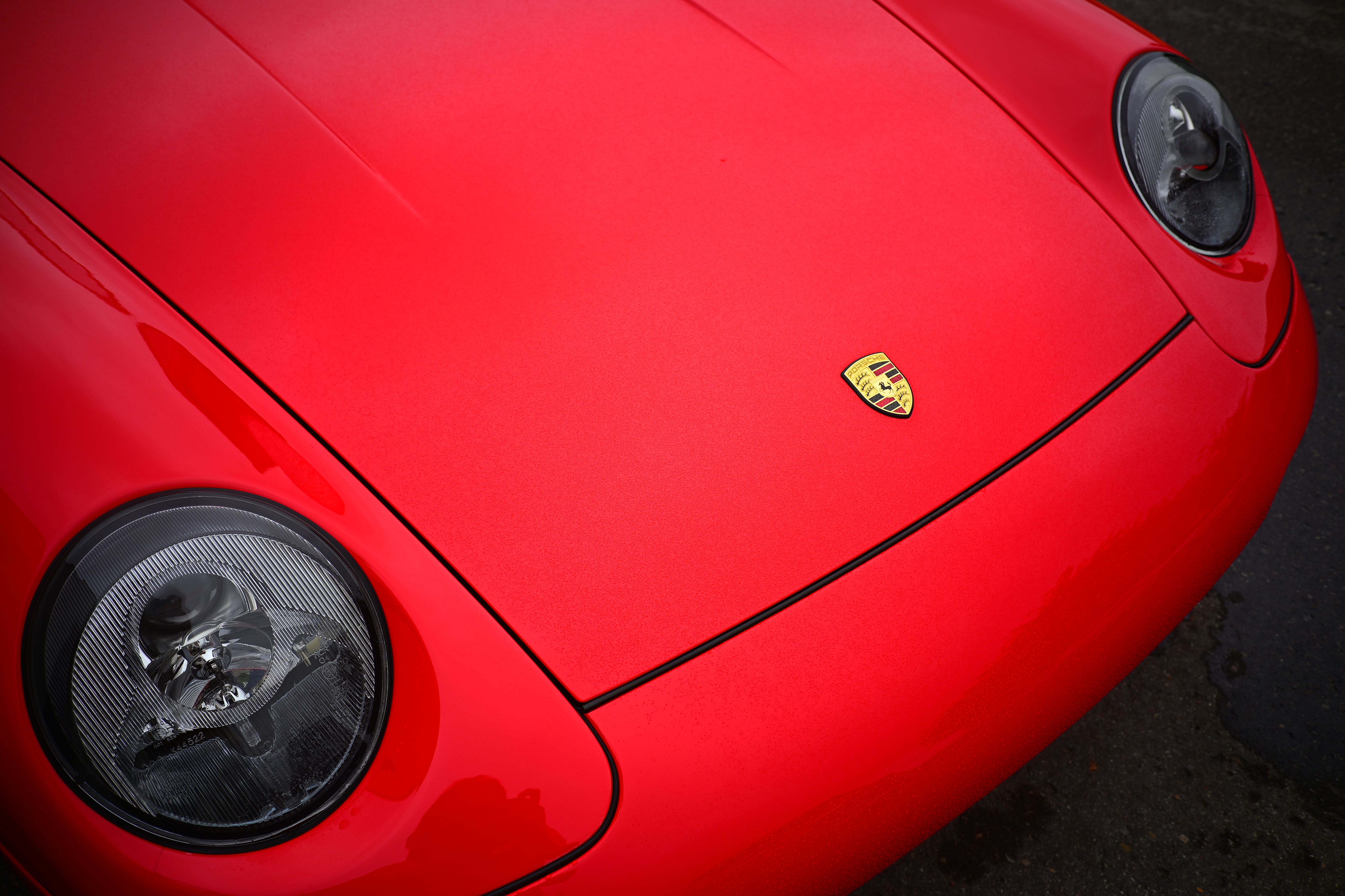 Guards Red Porsche 911 in Drizzle, 9:57 AM, Saturday, 07 June 2025. Nikon Z5 II, Viltrox AF 28mm f/4.5 at its fixed f/4.5 at 1/250 at Auto ISO 100, +0.3 stops exposure compensation (LV 12⅓), exactly as shot. bigger or camera-original © JPG file.