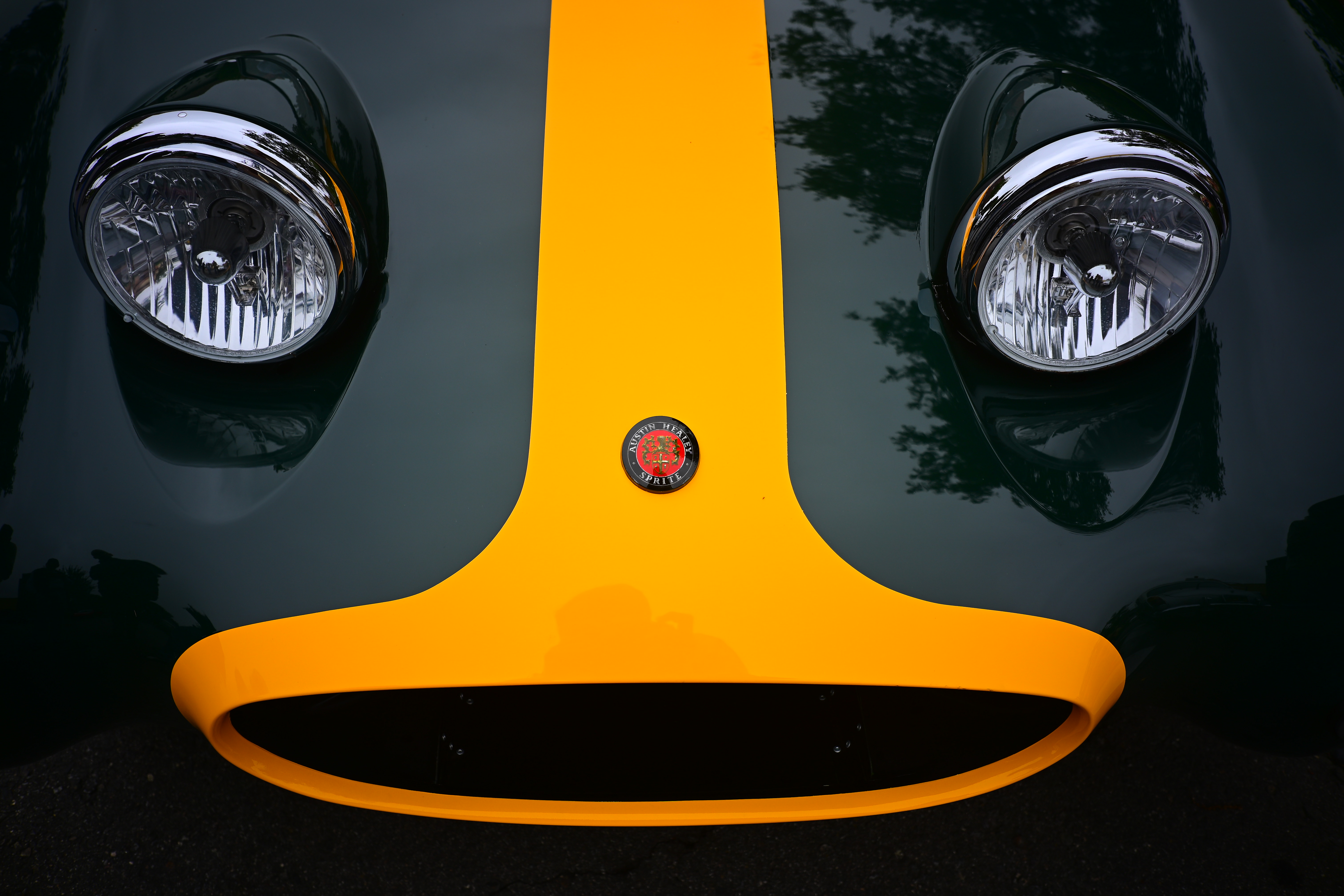 Bug Eye Sprite, 11:50 AM, Saturday, 07 June 2025. Nikon Z5 II, Viltrox AF 28mm f/4.5 at its fixed f/4.5 at 1/500 at Auto ISO 100 (LV 13⅓), Radiant Photo software to lighten the headlights. bigger or camera-original © JPG file.