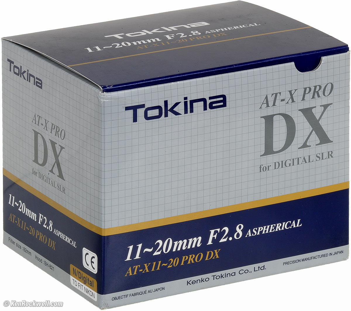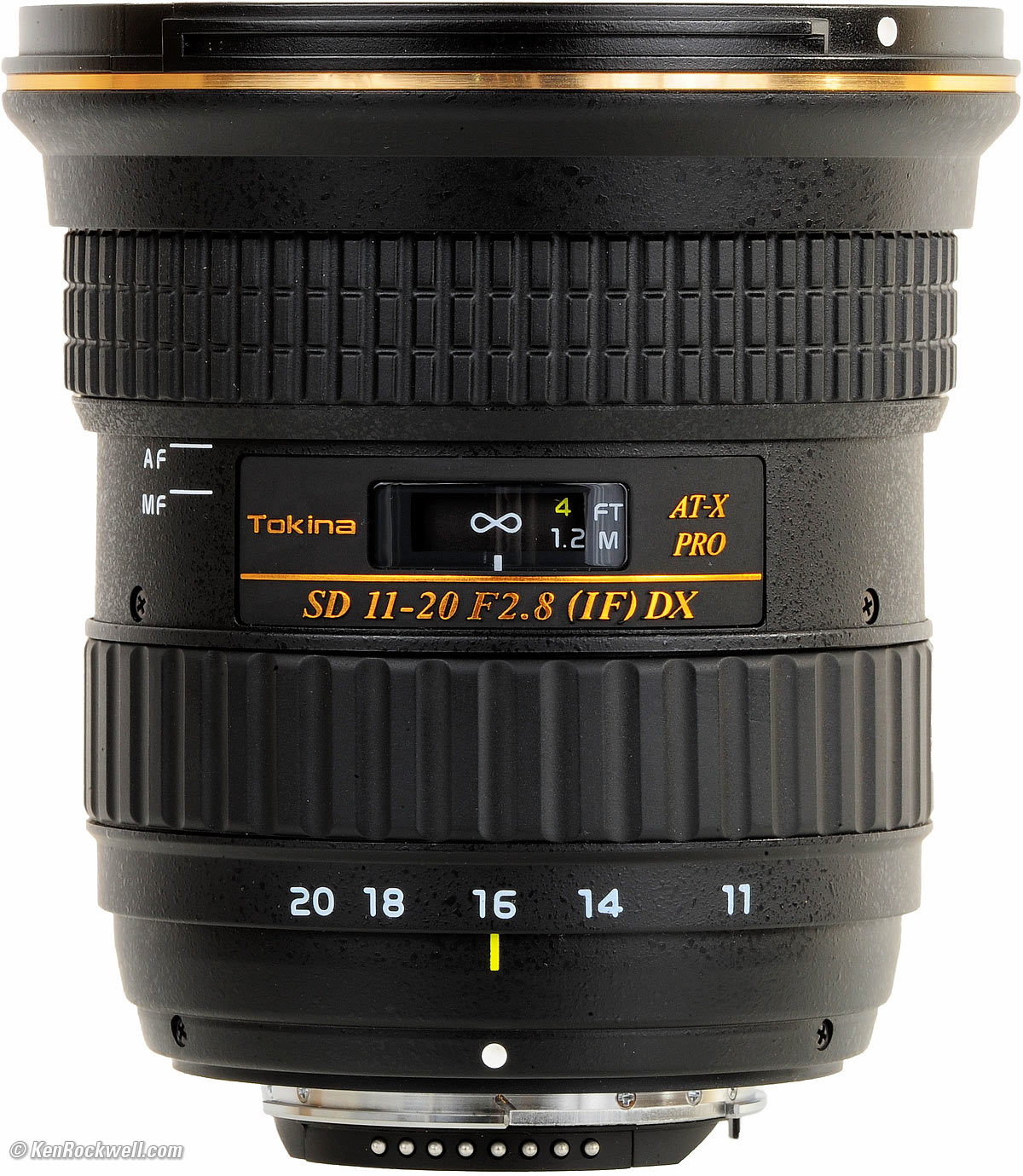 Tokina 11-20/2.8. bigger. Name Kenko Tokina calls this the Tokina AT-X 11-20mm f/2.8 PRO DX (IF) SD. AT-X: Advanced Technology-seX. PRO: Push-pull mechanical clutch mechanism on the focus ring to swap between auto and manual focus. DX: Covers only APS-C cameras. It will cut off the picture edges if shot on full frame or 35mm film at settings wider than 16mm. IF: Internal focus; nothing moves externally as focussed. SD: Super-low Dispersion glass for less secondary chromatic aberration.