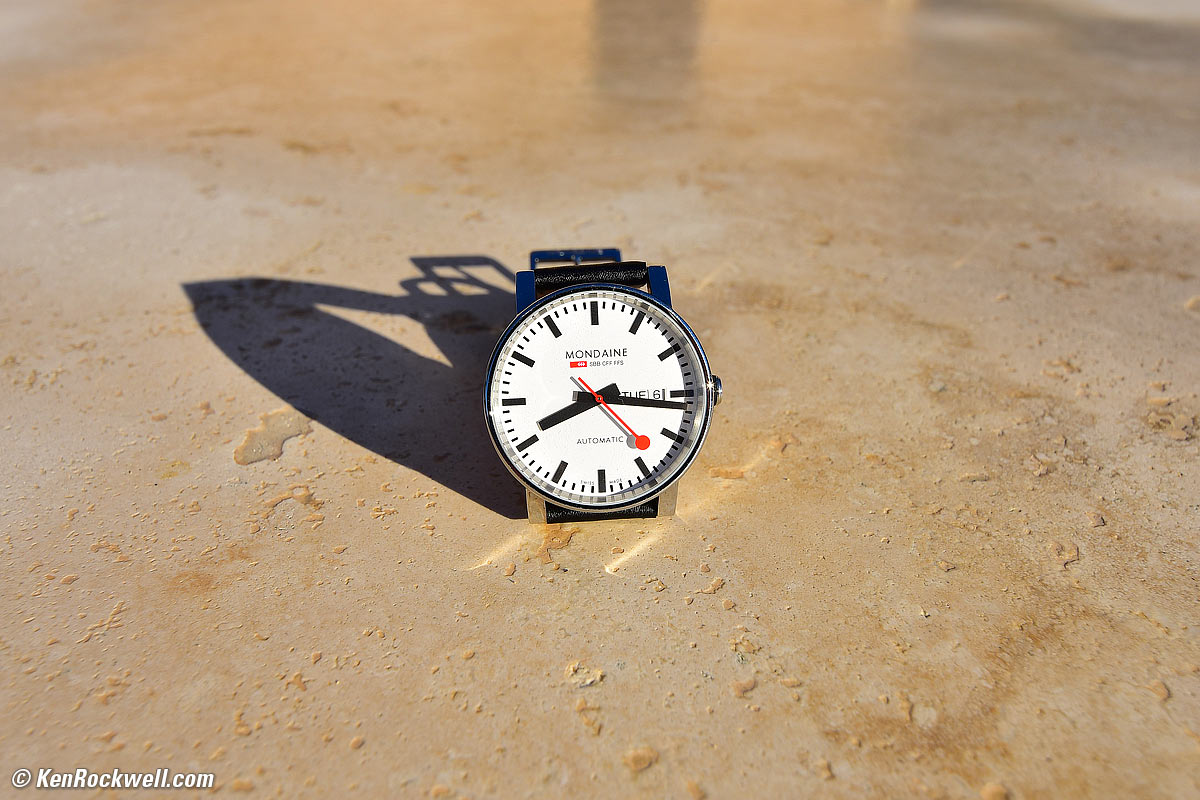 Macro performance top It's an ultrawide. It focuses to within inches of the front of the lens, but it only looks his close: Mondaine A1323034811SBB at close-focus distance at 20mm on DX. bigger. It's super-duper sharp at normal apertures; here's a crop at 100% from a 15 MP image: