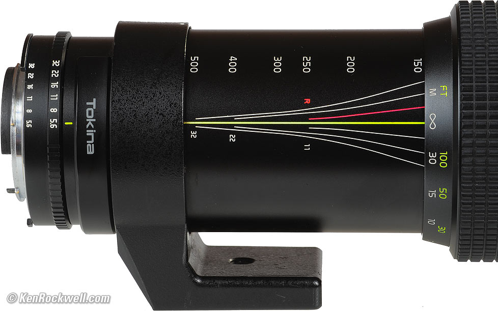 IntroductionTop Intro Compatibility Specifications Performance Recommendations More This is an exotic manual-focus third-party lens that was made to fit Nikon, Canon FD, and some other cameras. The Nikon mount version works great with Nikon's full-frame and better DX digital cameras. Focus is of course always manual. Tokina only sold about 1,000 of these in USA over 10 years. At its peak, they only sold about 10 per month in the USA. When new, it sold for just over $1,000 at deep NYC discount at places like B&H Photo Video. In 2015, they go for about $250 used. It's a big lens, over a foot (30cm) long and takes a 95mm filter. It has exceptionally low distortion, making it a great choice if architectural vignettes are your thing.