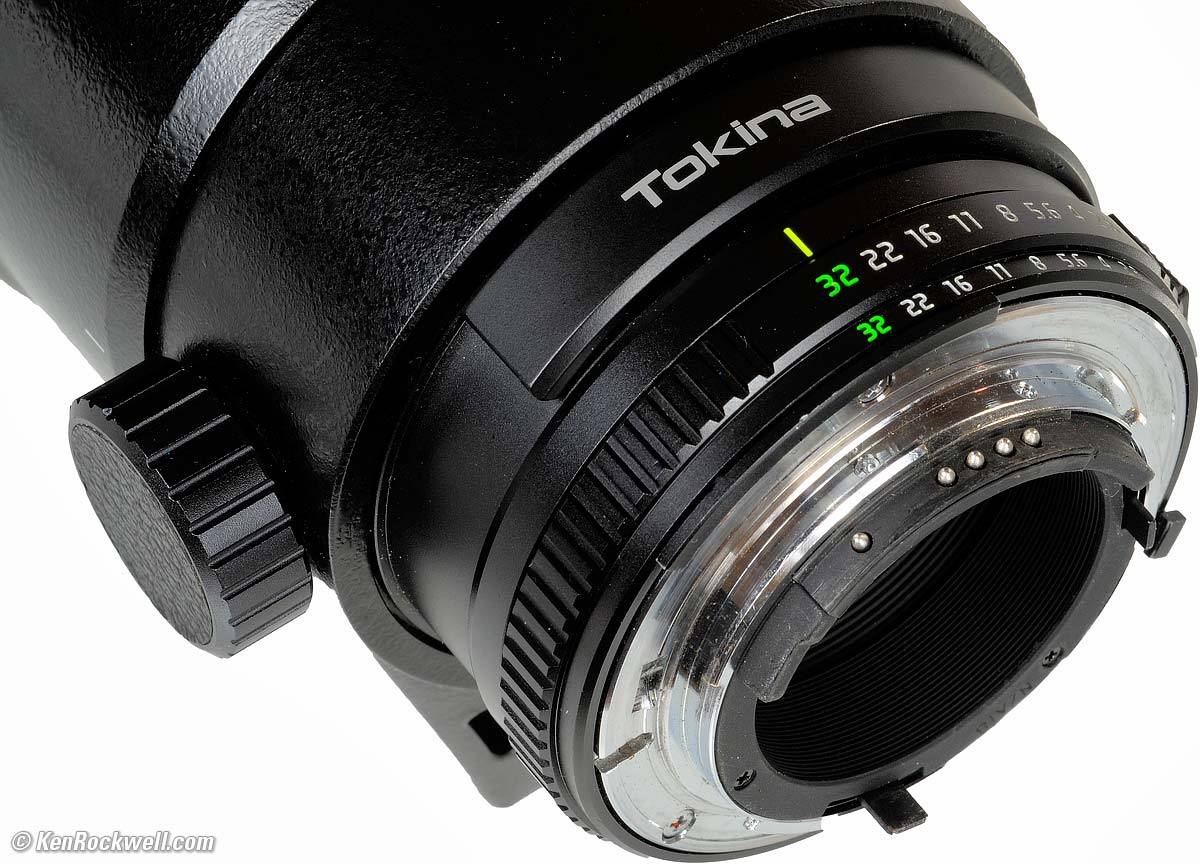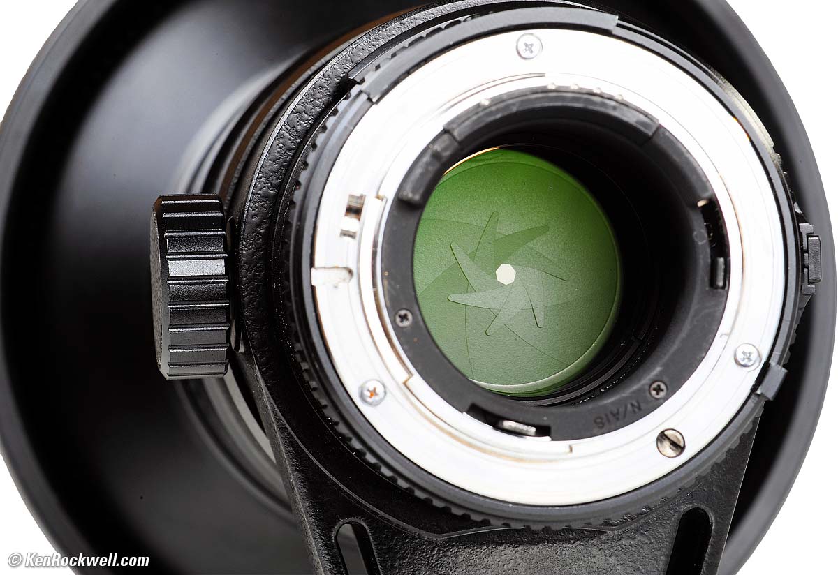 DiaphragmRear, Tokina 300mm f/2.8 AF AT-X. bigger. 7 straight blades, at least on the Nikon version. Other versions may have different diaphragms. Stops down to f/32.