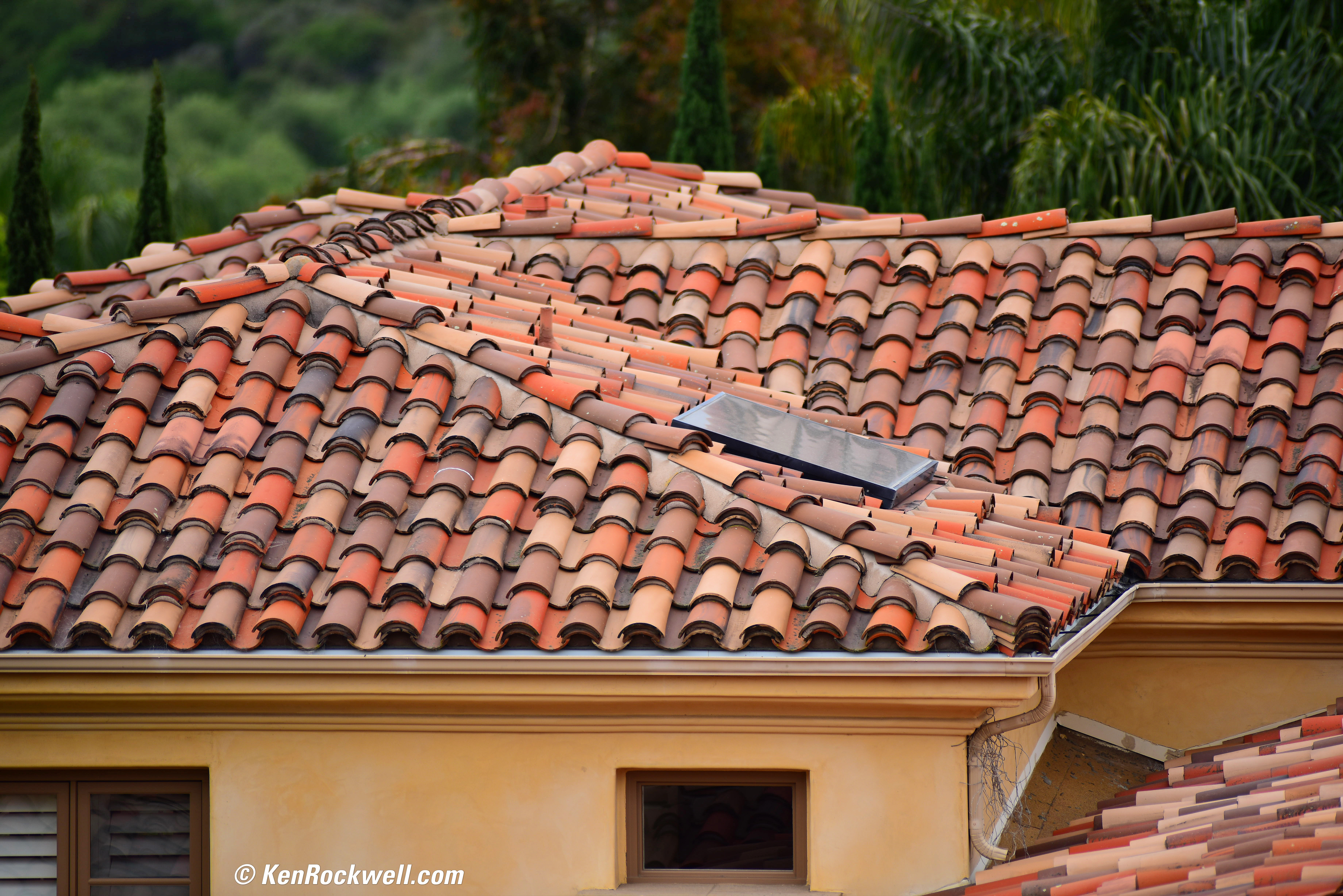 Tile Roof, 01 June 2017. Nikon D810, Tokina 300mm f/2.8 hand-held at f/2.8 at 1/500 at ISO 100. bigger or full-resolution. Only the front line of the roof is in focus, and as you can see, it's super sharp from edge to edge even wide-open at f/2.8.
