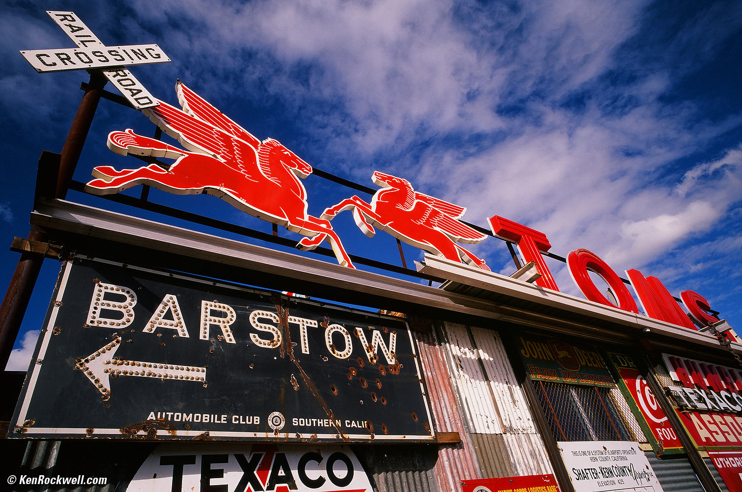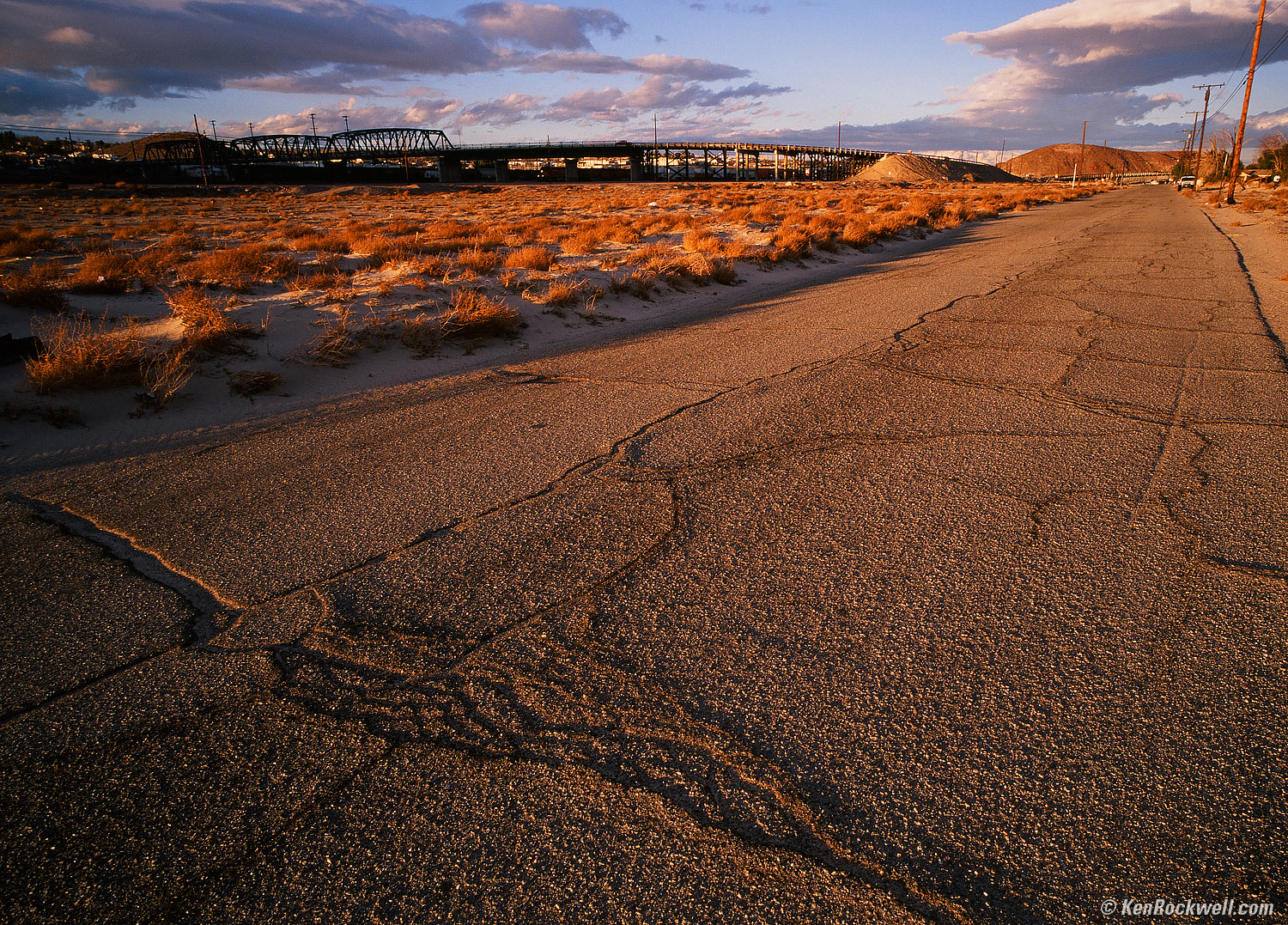 Here are some snaps from two US Route 66 trips I made February 06-10, 2009. These were all snapped with a Leica full-frame system using the RealRaw EX-S/EX-R™ process, which costs a fraction of what I almost paid for a Nikon D3X body. See Tech De tails for more. See Also Lydia Marcus' book she made using purely the images made on this trip. Better still, I'm in the book, so I'm famous. Yay! You may click the images or the "enlarge" links to enlarge them. Leica M7, 21mm f/2.8 ASPH and 81A, Fuji Velvia 50, NCPS develop and scan. Tech Details.