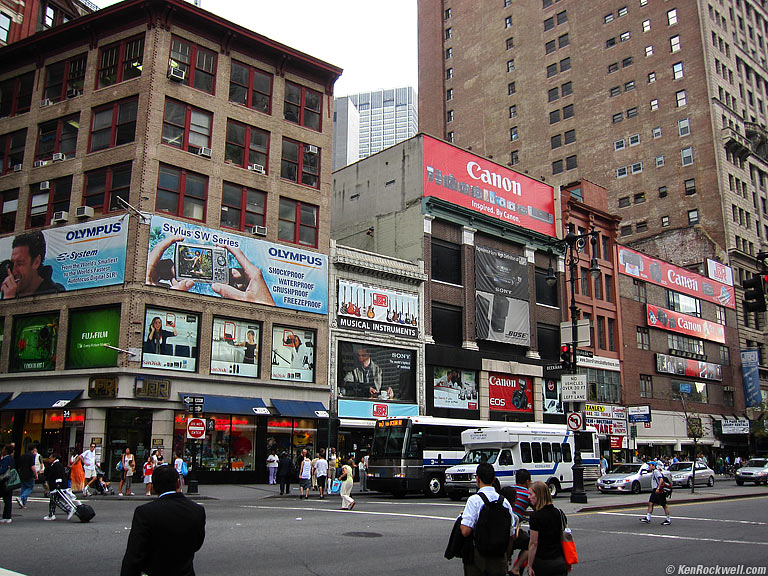 J&R, New York City, 4:40 PM. I straightened this shot in Photoshop's Lens Distortion FIlter, saving me the trouble of setting up a view camera in the middle of traffic. Roll your mouse over the image to see it as shot. I met with some folks at J&R, and then headed back out. The light was better as we left: