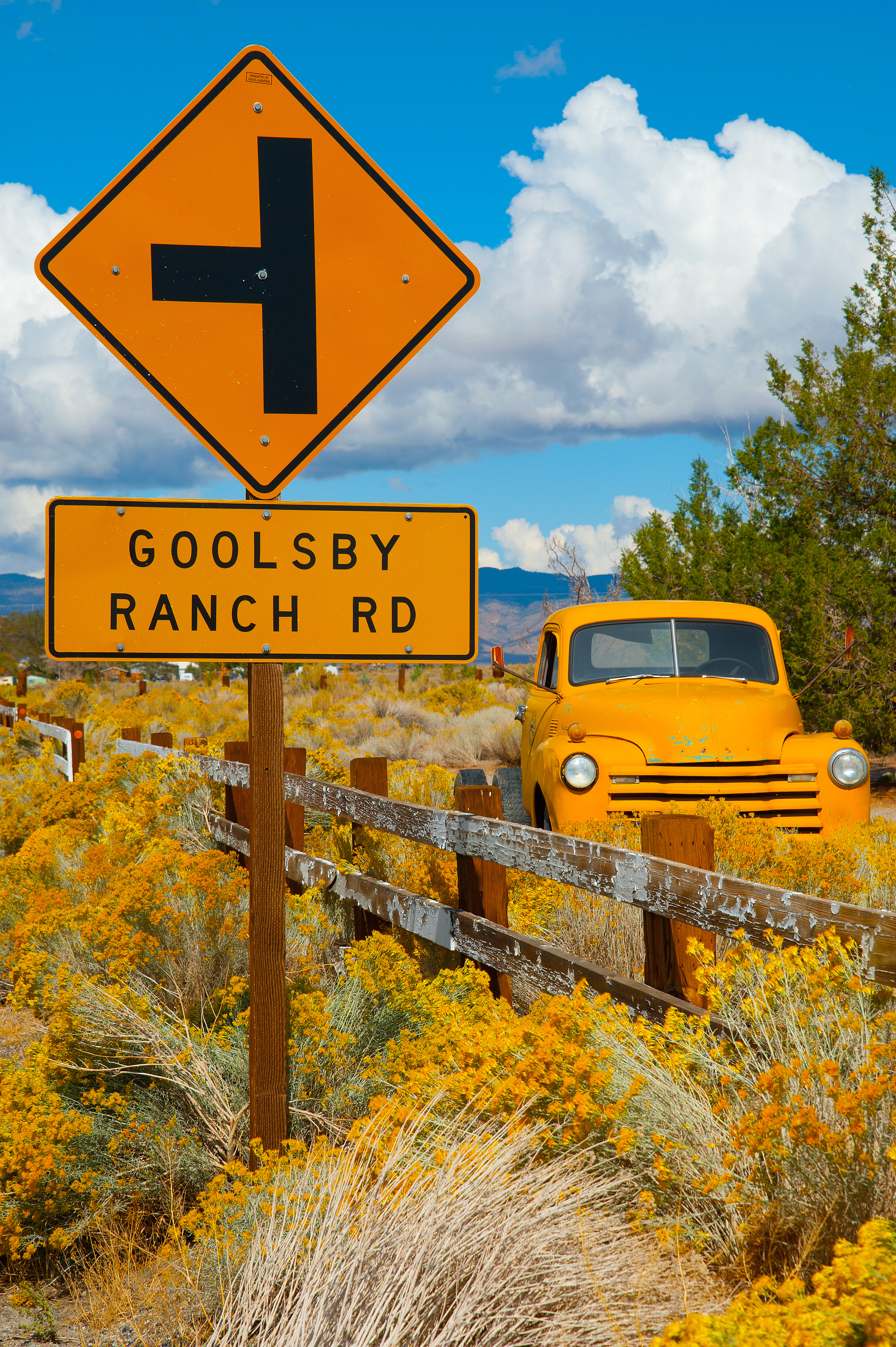 Yellow Truck, Lee Vining. bigger. Snapped on my Nikon D3 with the 28-300mm VR set to 250mm; f/5.6 at 1/125. bigger. VR easily let me shoot at 300mm at 1/125. The lens' natural falloff, seen here at its worst, helped emphasize the yellow truck and keep our eyes from wandering off into the corners. How do I see this stuff? I made this shot off the balcony of my motel. I just keep my eyes open, which I can do, because my little brain ins' t clogged with unnecessary thoughts like NEF algorithms or changing lenses, and my body is relaxed from not carrying all the junk others still do.