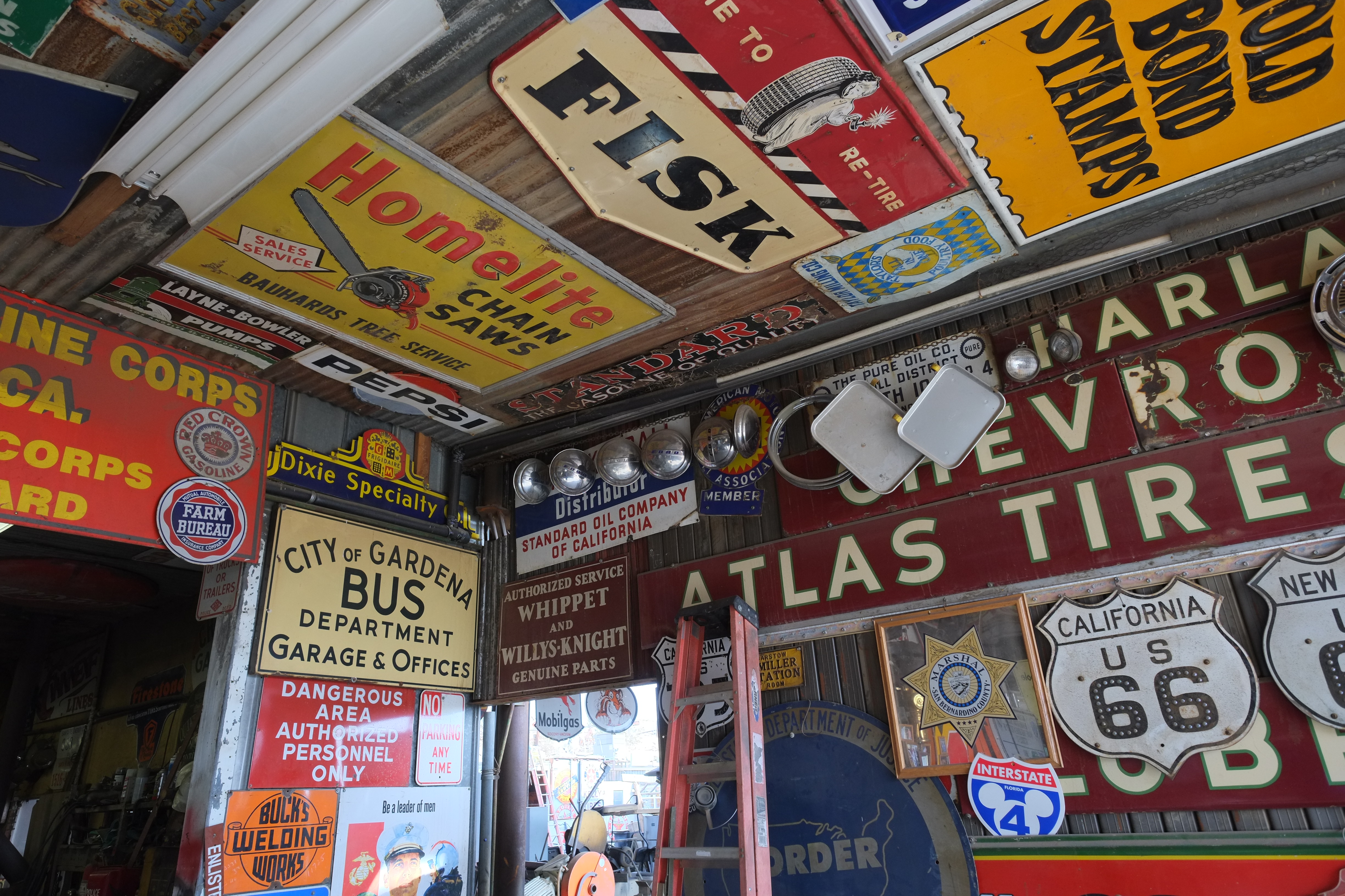 Tom Welding. (Fuji X-E1, Fuji 18-55mm at 31.5mm, AUTO ISO 800, f/3.6 at 1/80, animated GIF created from the sequence of still shots made in the X-E1's 6 FPS mode.) From Tom's we went over to the Route 66 Mother Road Museum.