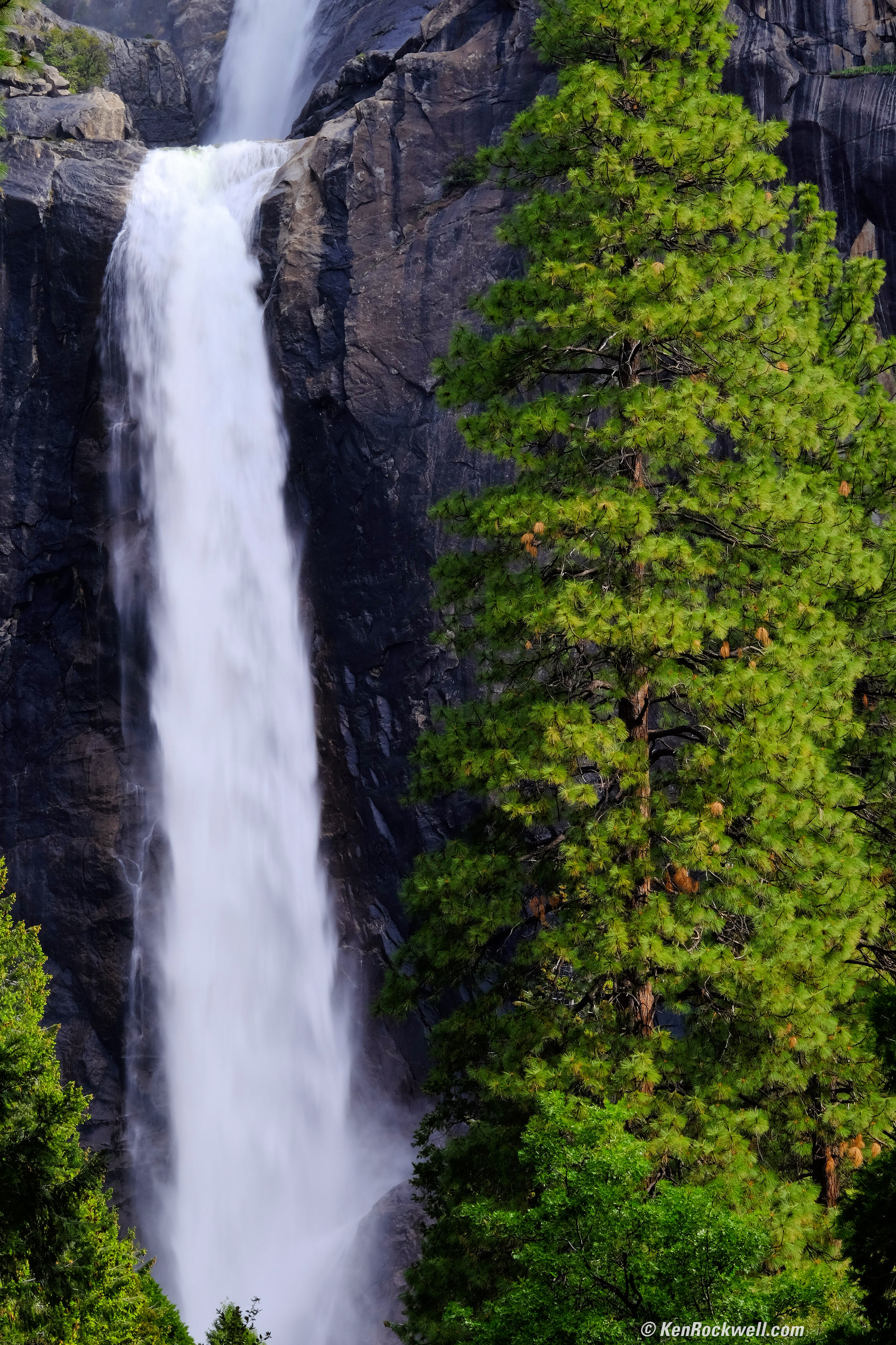 Yosemite Falls, 8:54 AM. (Fuji X-T1, Fuji 55-200mm at 172mm, f/22 at 1/15 hand-held at Auto ISO 200, Athentech Perfectly Clear.) Full-resolution. Note how I was able to hand-hold at 1/15 to get the water to look great, and with OIS image stabilization, needed no tripod.
