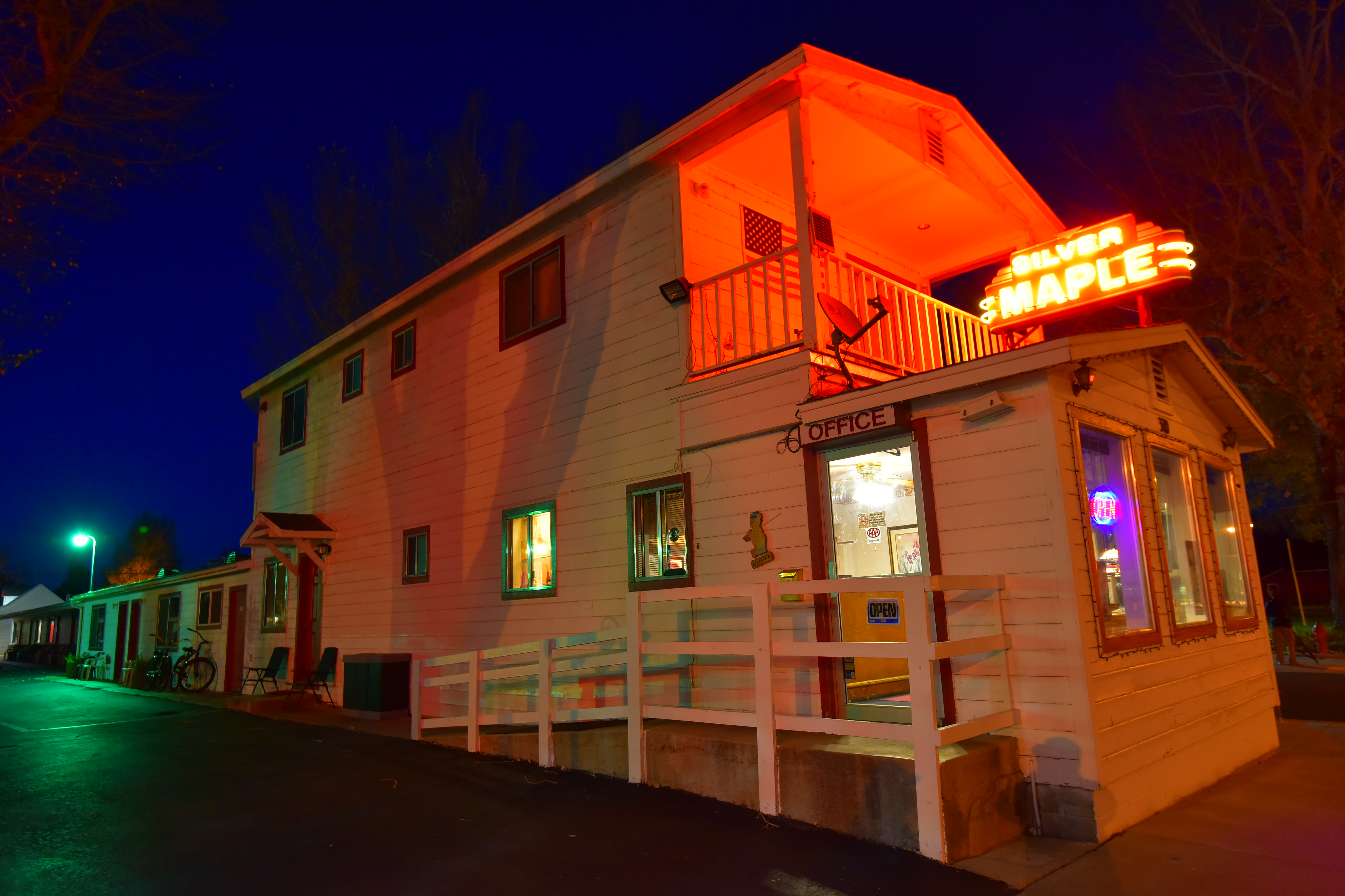 Silver Maple Motel, Bridgeport, California, 6:41 PM. (iPhone 6 Plus, f/2.2 hand-held at 1/15 at Auto ISO 250, Athentech Perfectly Clear v2.)