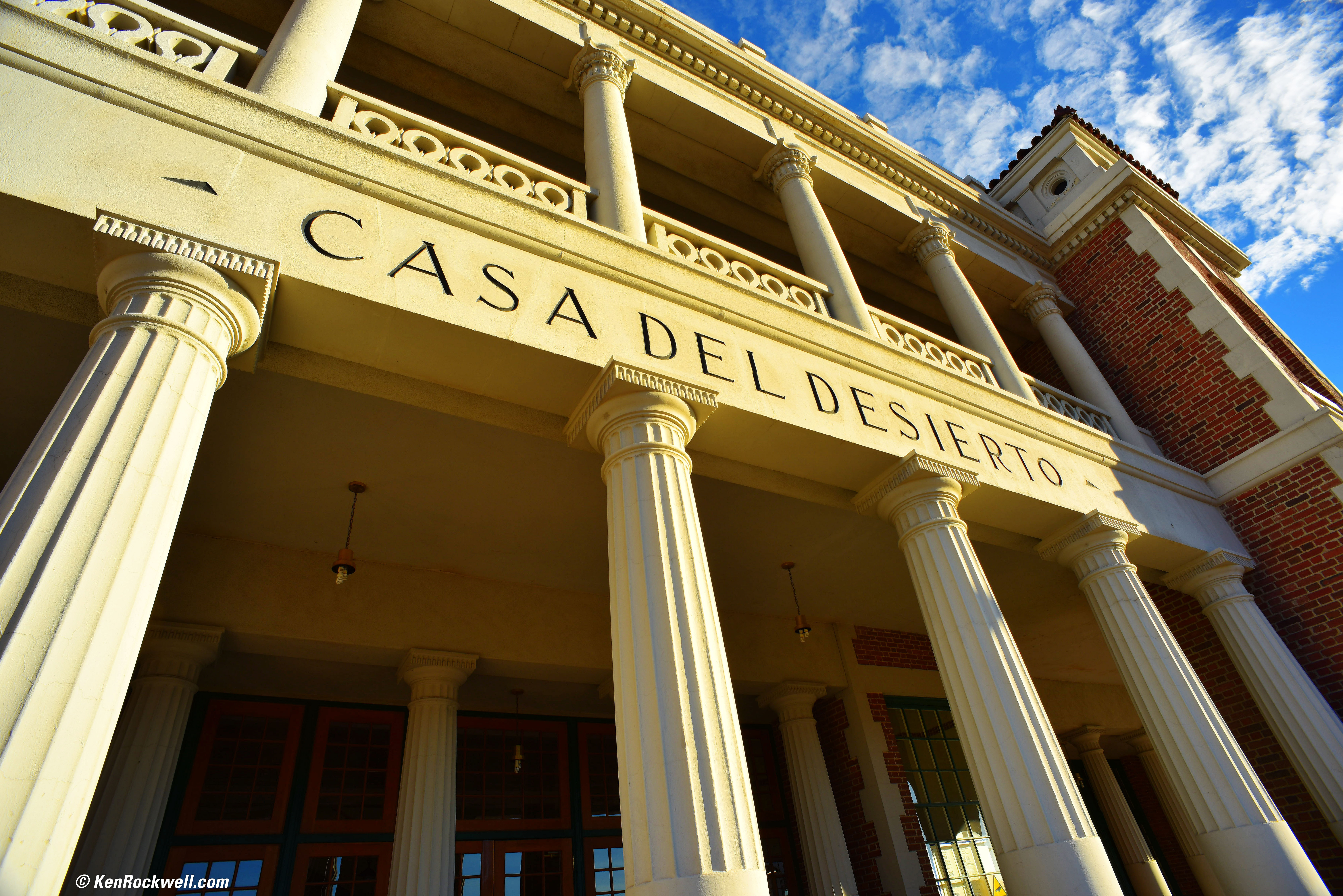 Casa del Desierto at Dawn, Barstow, 8:04 AM. Nikon D810, Nikon 18mm f/4 NIKKOR AI, f/11 at 1/125 at Auto ISO 100. Now east to Daggett and its historic garage: