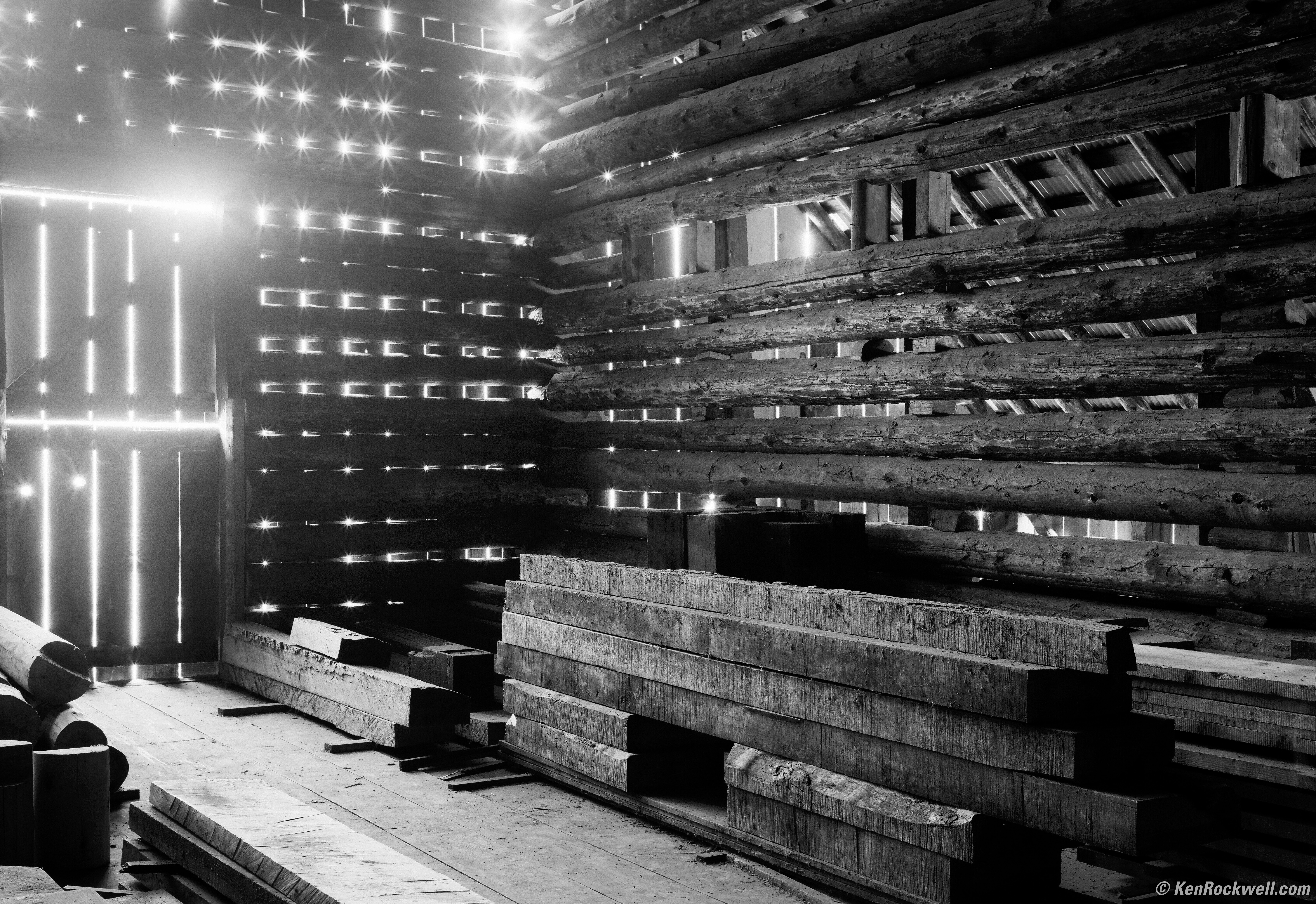 Inside a Scary Barn, 2:15 P.M. Kodak Medalist II with no filter at f/22 for 4½ minutes at 25 feet, Kodak TMX100. bigger or full resolution.