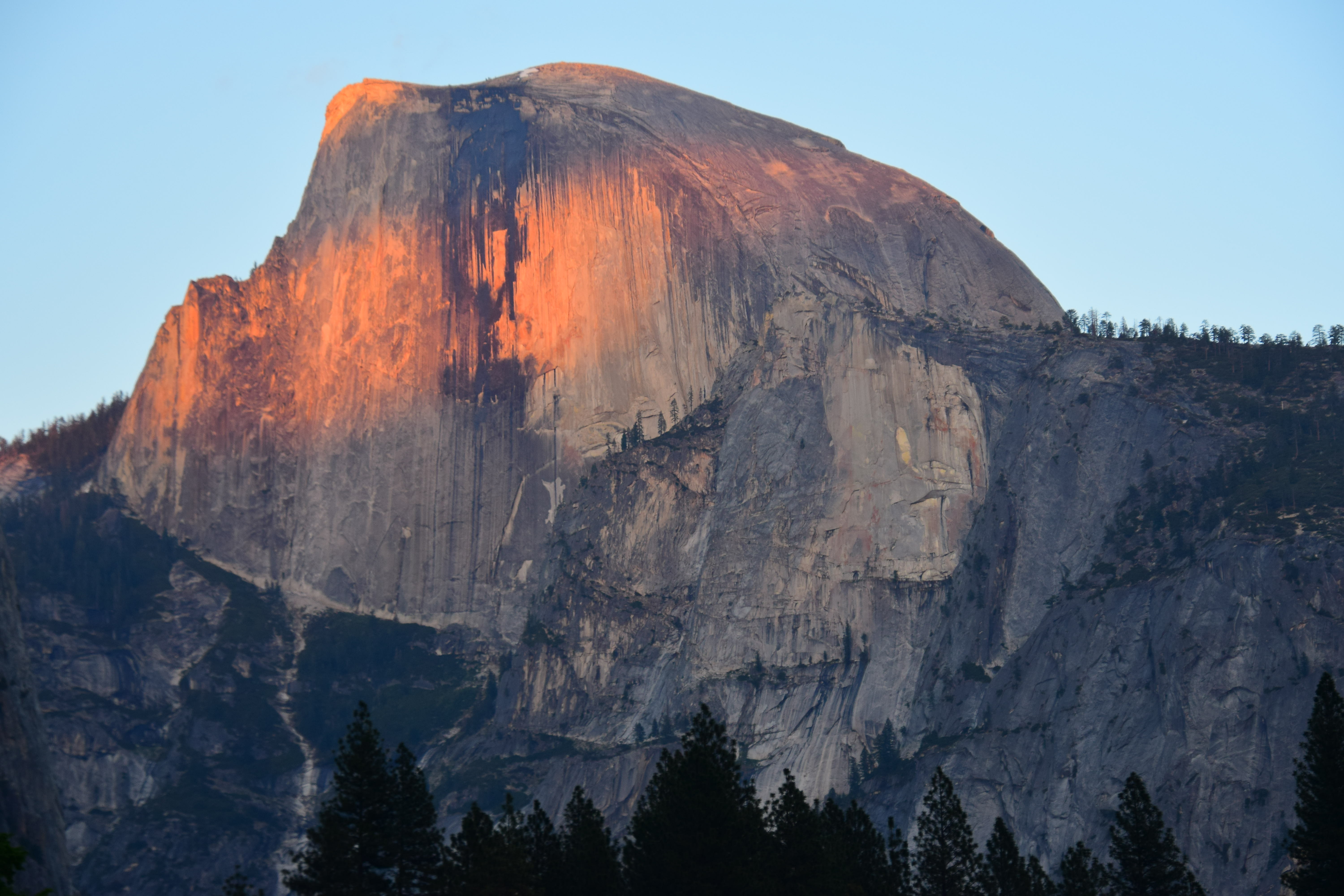 Half Dome in Last Light, 7:55 P.M. Nikon D3300, Tamron 18-400mm at 86mm, f/5 at 1/160 at Auto ISO 360, Perfectly Clear v3.5. bigger or camera-original © file.