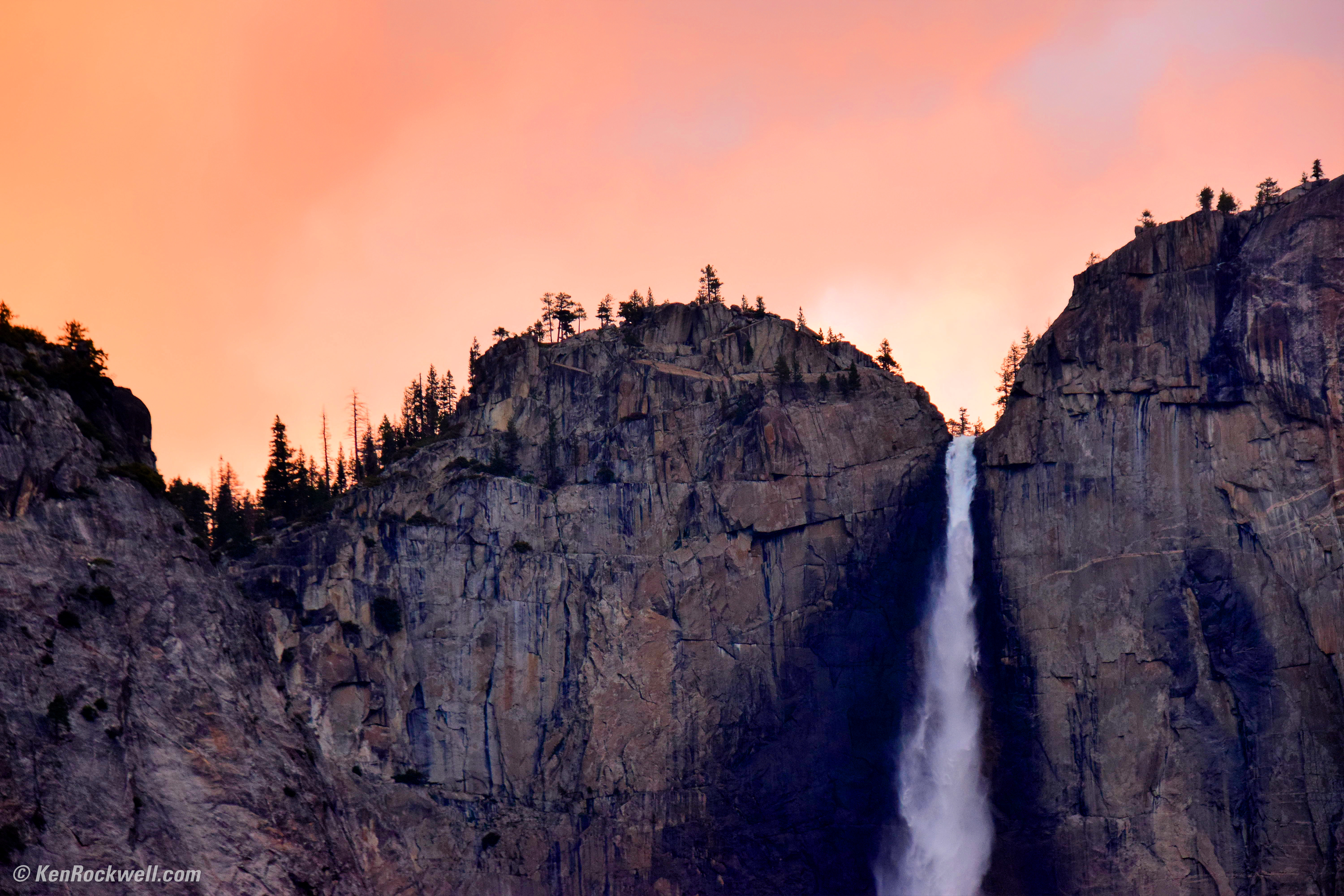 Yosemite Falls at Dusk, 7:54 P.M. Nikon D3300, Tamron 18-400mm at 135mm, f/5.6 at 1/200 at Auto ISO 1,100, Perfectly Clear v3.5. bigger or full-resolution.