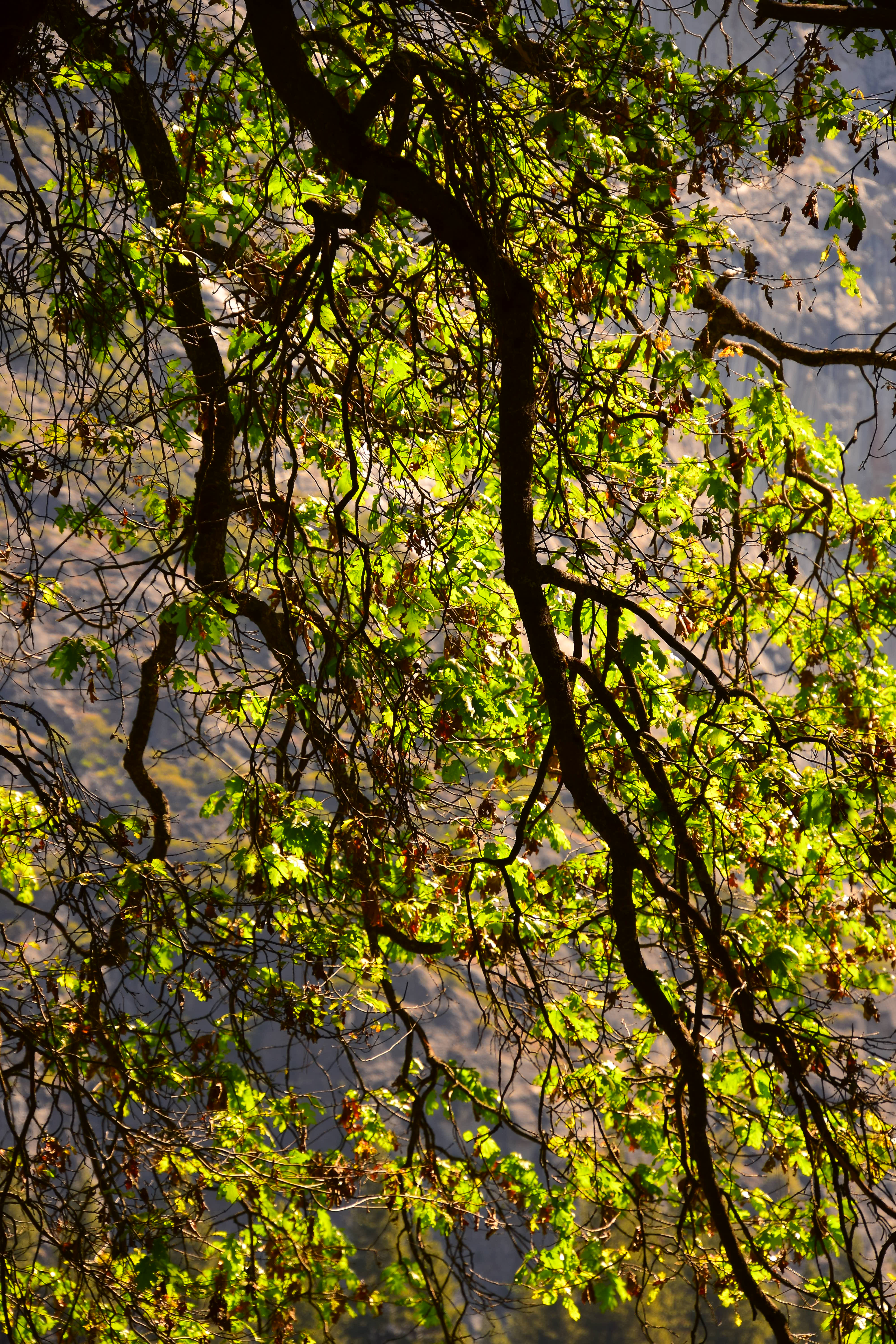 Backlit Green Leaves, 10:31 A.M. Nikon D3300, Tamron 18-400mm at 140mm, f/5.6 at 1/250 at Auto ISO 125, Perfectly Clear v3.5. bigger or camera-original © file.