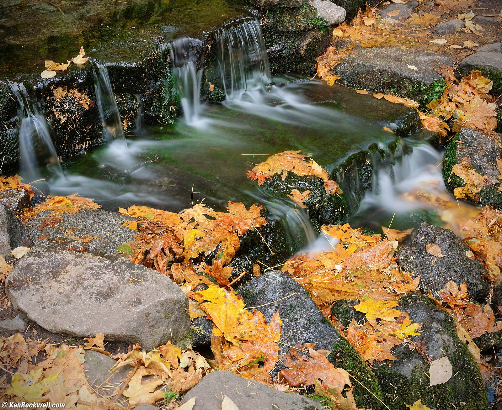 19 October 2019, SaturdayFern Springs, Yosemite Valley, Yosemite National Park, California, 7:28 A.M. Fujifilm GFX 100, Fujifilm GF 50mm f/3.5, f/11 for 9 seconds at ISO 100 (LV 3¾). bigger. For this nine-second exposure, I used the GFX 100 on my Nikon AH-5 tripod spacer (for my convenience with its thumb-screw mounting rather than a separate "quick release plate") on my Manfrotto 410 Geared Head on my original 1995 Gitzo G1227 Mountaineer (world's first) carbon-fibre tripod.