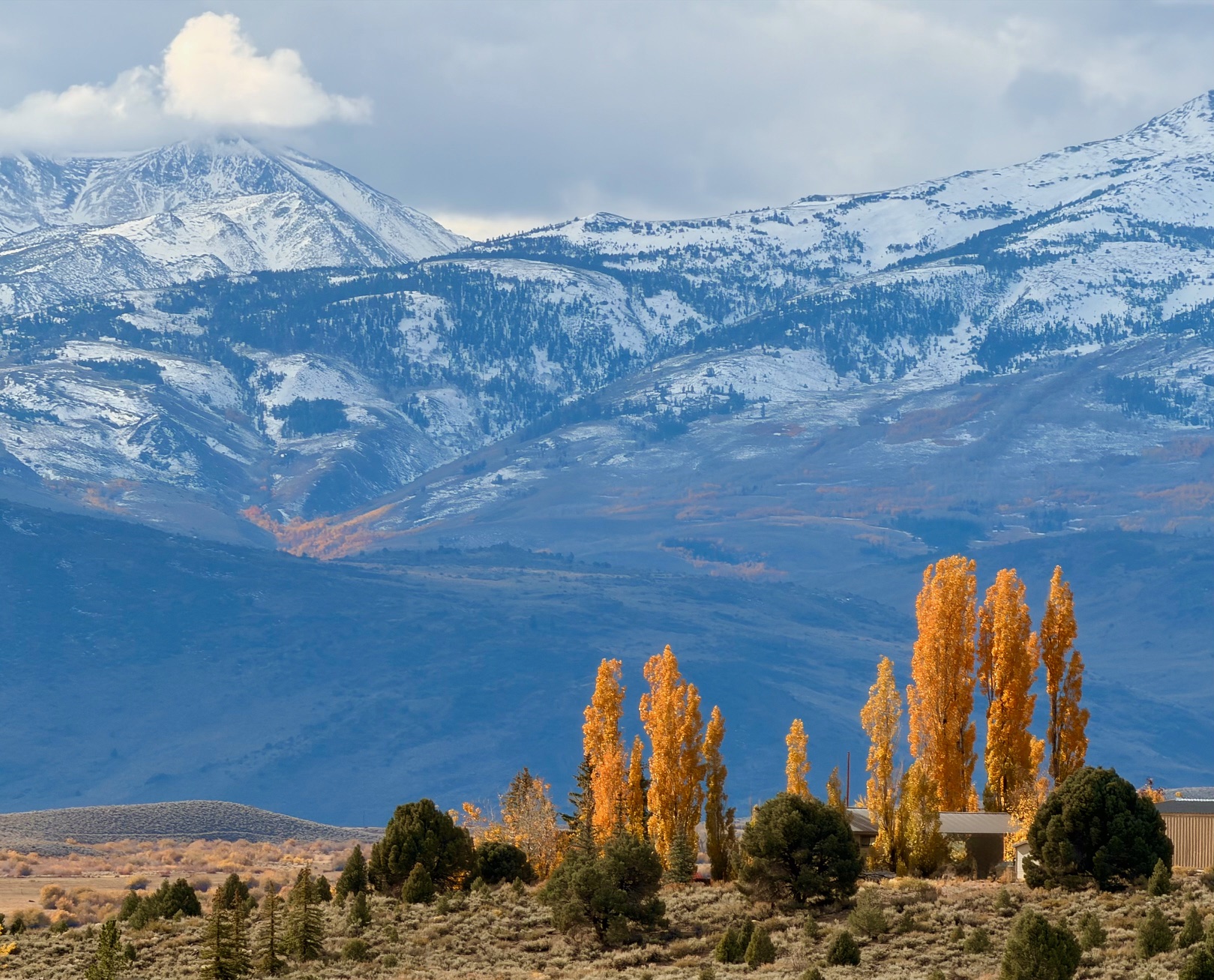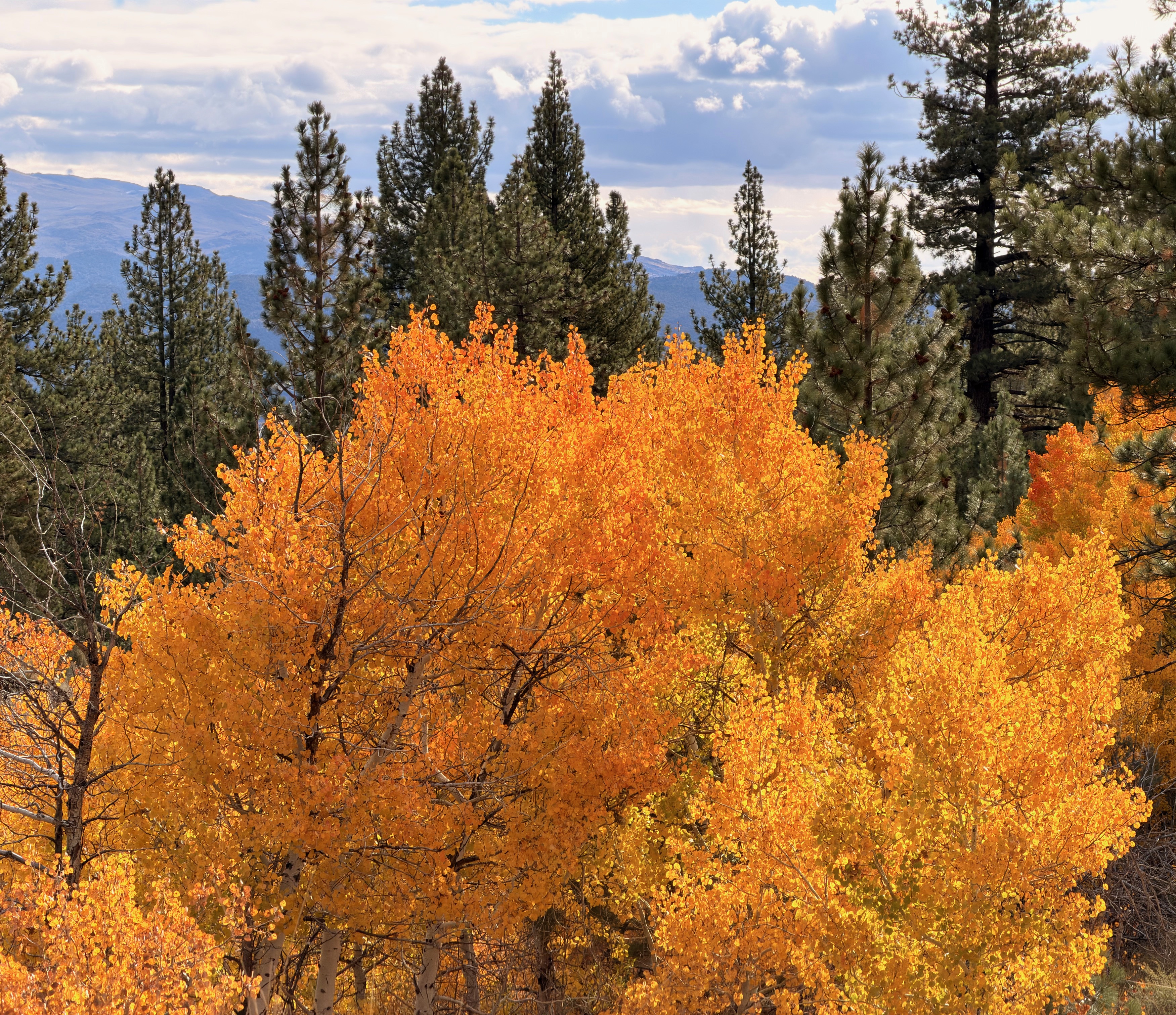 2,856 px, 3.6 MB /trips/2025-10-395/hdr/IMG_5527-gold-and-snow.jpeg Snow Atop Mount Dana with Brilliant Aspens, Inyo National Forest, Lee Vining, California, 11:06 AM. iPhone 17 Pro Max 4× camera (16.9mm actual or 100mm eq.) at f/1.8 at 1/2,915 at Auto ISO 64 (LV 13.8), as shot. bigger or as-shot 24 MP © 8.6 MB JPG file: