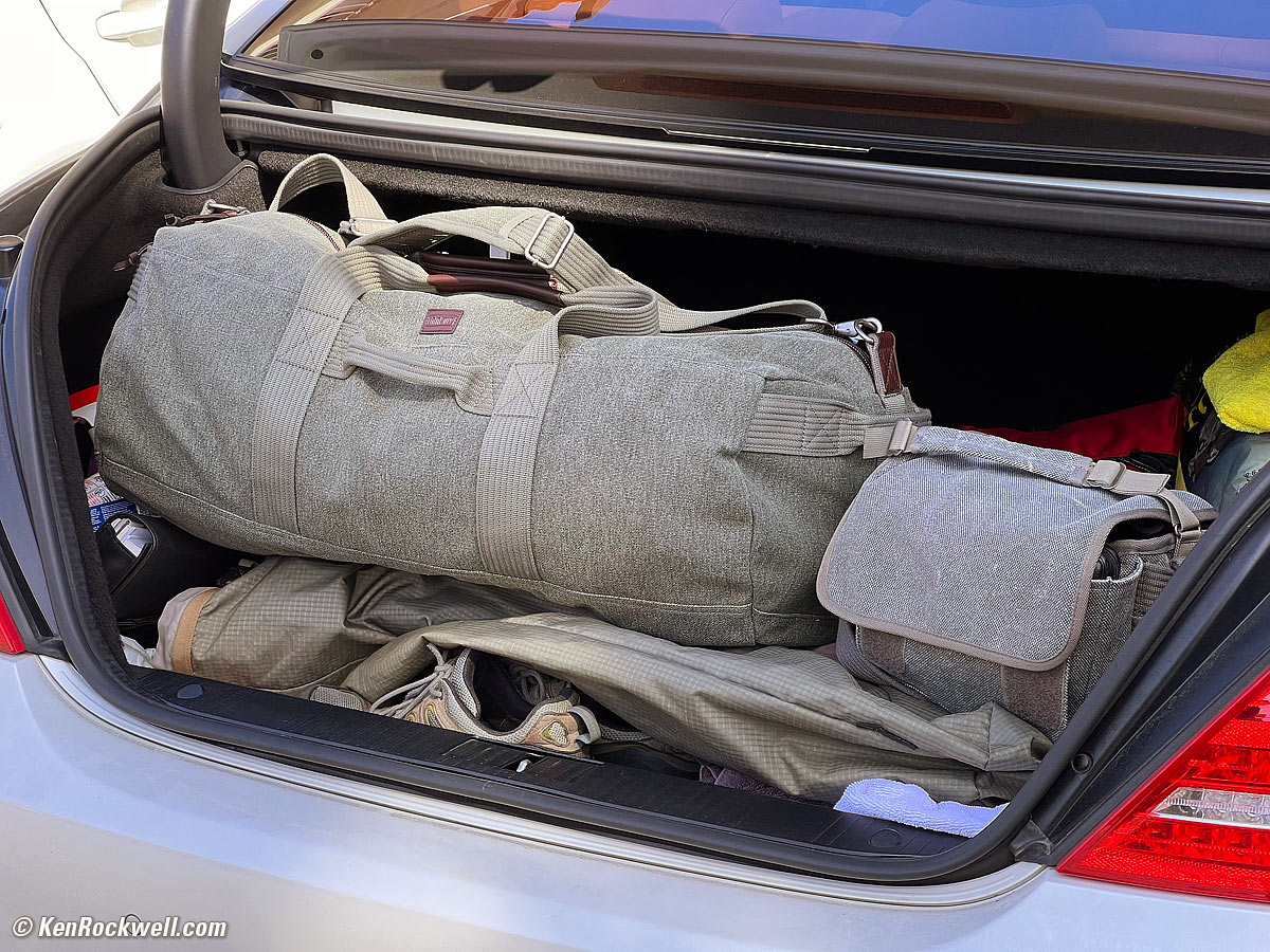 ShootingI brought my Canon EOS R1 with my RF 24-105mm IS STM and I was set. I also brought my RF 20mm f/1.4L VCM and cheap (but light!) RF 75-300mm.The RF 24-105mm IS STM is ultralight and ultrasharp. The almost-free RF 75-300mm works really well on a stabilized camera like the EOS R1, and is so light and small it fits in my jacket pocket. I grabbed my new RF 20mm f/1.4L VCM just for night and Milky Way shots. I know the EOS R1 is way too big to carry around out in the woods, but tough, I wanted to run it through its paces for you folks for my my R1 review. I wanted to try out my new ultralight RF 75-300mm, so along with it I brought my ultralight and ultrasharp RF 24-105mm IS STM instead of my usual favorite, my RF 24-240mm IS USM. What a dumb idea! Never bring two zooms when one zoom like the RF 24-240mm IS USM replaces them both. With two zooms I had to stop what I was doing every other shot and jam lenses on and off my camera and in and out of my pockets. What a waste of time, especially when the light was changing — which it always is. It proved how foolish it is to use two zooms like a 24-70mm f/2.8 and 70-200mm f/2.8 for outdoor shooting when just one lens will do. I hated having to mess with swapping lenses every other shot. The camera companies try to make you think you need the big, heavy f/2.8 lenses because it makes them much more money, but all you really do is miss photos and possibly drop a lens down a hill changing it, when you could have just turned the zoom ring on a 24-240mm. The pictures are just as sharp! I brought my Hoya 67mm HRT Circular Polarizer which fit my RF 24-105mm IS STM. While my RF 20mm f/1.4L VCM also takes 67mm filters, do not use polarizers on 20mm lenses. My RF 75-300mm takes smaller 58mm filters, so I simply held the filter over the front of the RF 75-300mm of my iPhone 17 Pro Max. Easy! I brought my Oben CT-2491 Carbon-Fibre Tripod with my Oben GH3W-15 Geared Head and Oben SPA-1000 iPhone adapter for Milky Way shots. I use a Nikon AH-5 tripod adapter on top of the geared head so I can attach cameras with just the thumb screw of the AH-5; I've never understood how seven steps to get a camera on a quick release is quick. I usually shot in P (program auto exposure) or Aperture-Preferred (Av) modes. I always use Auto ISO with Auto Minimum Shutter Speed and Auto White Balance. I only come off any of these Auto modes if for some reason the camera isn't setting itself the way I need automatically. I use all these Auto settings because they almost always set the camera the way I need much faster than mucking around with manual settings, and this lets me concentrate on what's actually in my photo rather than camera settings. I did use the manual exposure mode for my Milky Way shots. I shot my EOS R1 in STANDARD Picture Style with Sharpening set to +7,1,1 and Saturation set to +4. I was running firmware version 1.0.1. I only shoot JPGs, specifically basic (QUALITY 4, ▟ stairstep icon) JPGs; no higher quality JPGs or RAW CR3 files were used or needed. JPGs give me full freedom to adjust exposure and dynamic range exactly like raw; don't let bullies make you think you need to use card-choking raw files just to edit your photos! I'm only throwing away pixel bloat and saving file and card space; my 24 MP JPG images have more than enough depth and detail for everything I need, and due to pixel dumping you can't even see more than 8 MP at one time anyway! Of course I brought my new iPhone 17 Pro Max. I use its native Camera app in its default HEIF format (Settings > Camera > App Settings > Formats > Camera Capture > High Efficiency). More at How to SHoot the iPhone 17. The iPhone doesn't simply have three or four "lenses," it actually has three complete cameras on its back, which is why I refer to its various cameras rather than lenses. Each camera has a different-sized sensor optimized to its lens. I read the EXIF exposure data for all my shots later in Photo Mechanic so I can report them under each image; I certainly didn't fiddle with manual exposures. It's also easy to read the iPhone's apertures, ISOs and shutter speeds in the Photos app by tapping the ⓘ (photo info) icon in the iPhone's Photos app. I traveled with my Canon system in my Retrospective 7 camera bag, while at any location I'd grab just the camera and pop the second lens in my pocket, leaving the bag with all my other accessories and tripod back in the car. My RF 20mm f/1.4L VCM only came out at night. My iPhone 17 Pro Max rides in my jeans pocket. I brought my clothes and non-photo gear in my ThinkTank Retrospective Duffel 75, a good-sized duffel bag that matches my beloved Retrospective camera bags! It holds more than enough clothes, toiletries and accessories for a few-days-long trip. It's super well-made of waterproof cotton canvas, cloth linings and leather trim just like the Retrospective camera bags; it's not the usual crummy nylon duffel bag. Perfect!