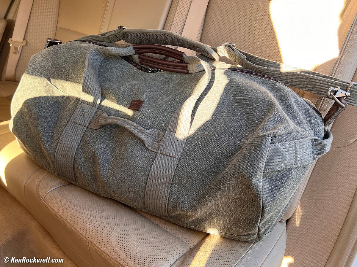 ThinkTank Retrospective Duffel 75. The left photo shows my Retrospective 5 bag on a different trip. click any to enlarge. I brought my computers and chargers in my Think Tank Retrospective Everyday EDC Backpack, so all three bags matched! The Ultimate Travel Set: Think Tank Retrospective Everyday EDC Backpack on top of my Retrospective Duffel 75 next to my Retrospective 7 Camera Bag. bigger.