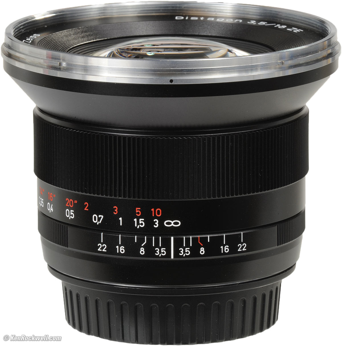 Specifications top Intro Specs Performance Compared Recommendations Zeiss 18mm f/3.5 ZE. enlarge. Name Zeiss calls this the Carl Zeiss Distagon T* 3,5/18. The Canon EOS EF mount shown in this review is suffixed "ZE." The Nikon AI-s mount is suffixed "ZF." The Nikon AI-s mount with CPU is suffixed "ZF.2." The Pentax K mount is suffixed "ZK." Distagon is Zeiss' trademark for wide-angle retrofocus lens. All wide-angle 18mm SLR lenses are retrofocus, thus the use of this trademark is meaningless, except that it sounds cool.